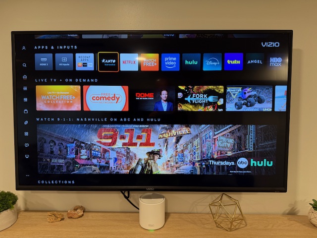 - 2Turn on the smart TV in the basement.